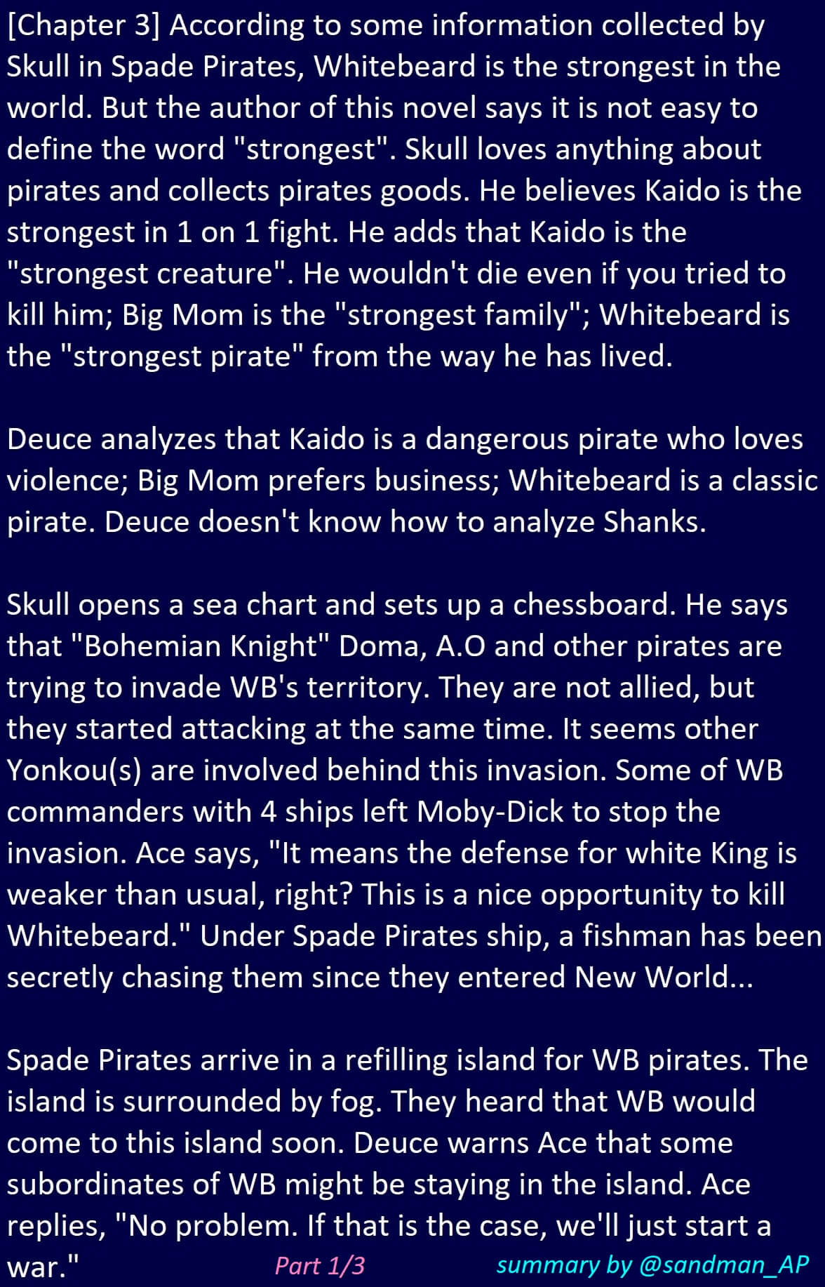 Sandman Here Is My Summary Of Chapter 3 In One Piece Novel Ace Volume 2 Ace Fights Jinbe In This Chapter Blackbeard Has Some Highlight Scenes In Chapter 4 And 5 T Co Toxrrhnnom